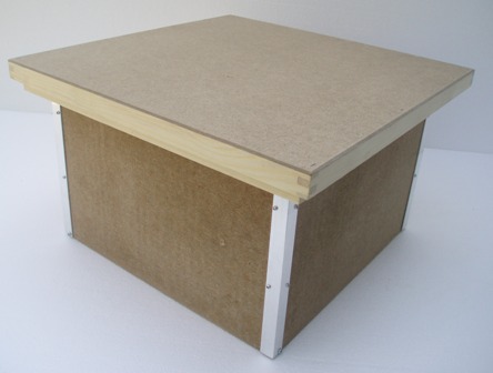 Horní nosný smrkový čepovaný rám je z vnitřní strany pobitý sololitem, který tvoří boky bedny. Horní rám zároveň slouží jako úchyt. Dno z vodovzdorné překližky je k sololitu přilepeno a přisponkováo. Hliníkové přinýtované stojky pevně spojují boky navzájem a ke dnu jsou přišroubovány. Víko tvoří dřevěný rám shora olepený sololitem.